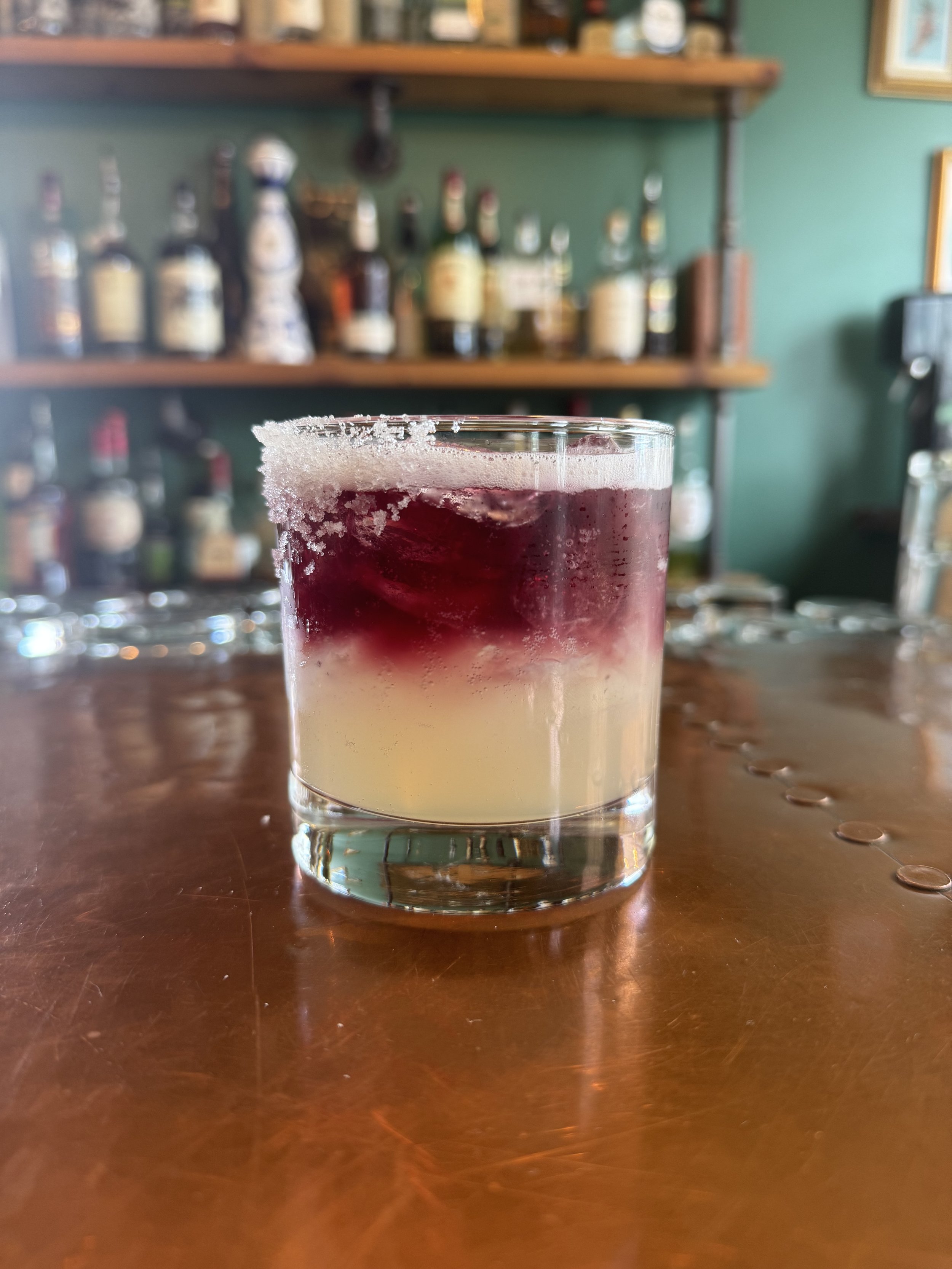 RED WINE with reposado tequila, citrus, sugar rim, and a red wine float
